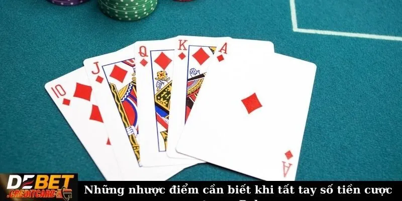 - Nếu sử dụng “All-in” quá nhiều, đối thủ sẽ dễ dàng đoán được cách chơi của bạn và có cách phản công khiến phương pháp này trở nên vô nghĩa, không những không mang lại hiệu quả mà mất hết số tiền hiện có.
